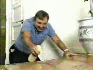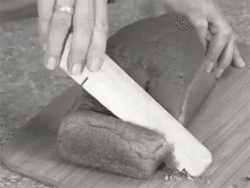 Cut a leaf of bread after I've used a power drill to brush my teeth