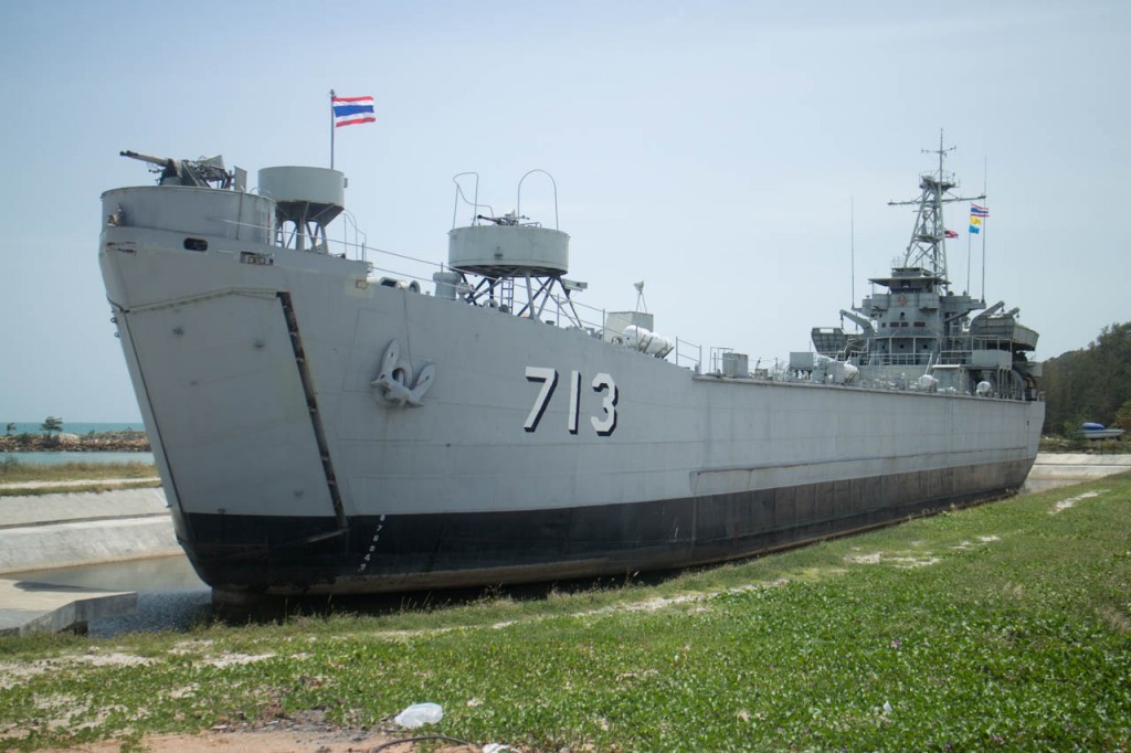 This flagship is placed in pool next to the harbor in Ko Phangan. It seems that nobody is aware of the purpose of this exhibition.