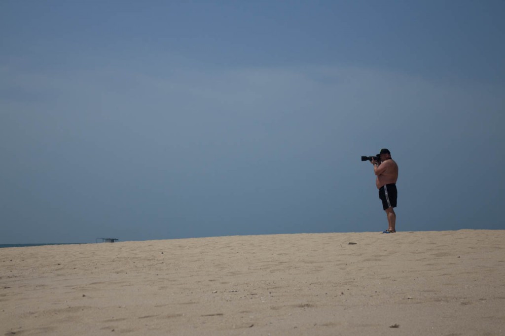 This sneaky guy spys on the people at the beach.