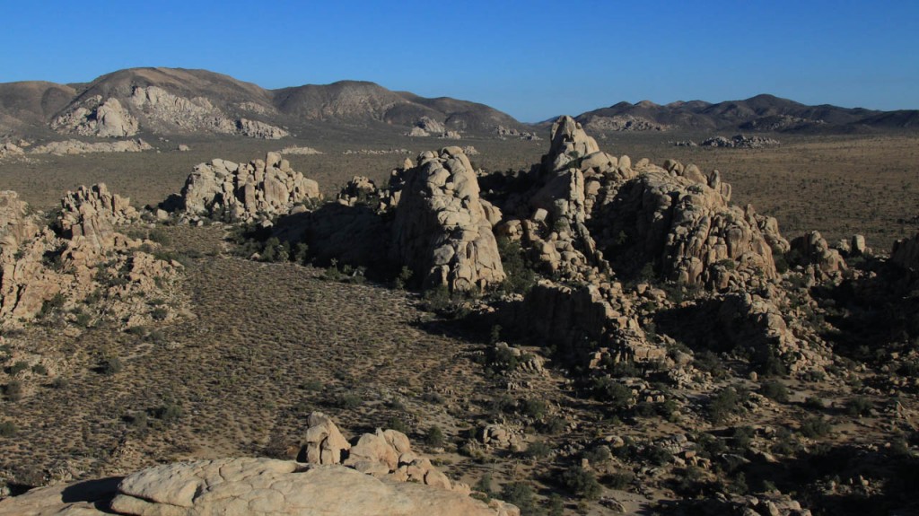 The hidden valley in the Joshua Tree national park looks more beautiful when the sun sets.