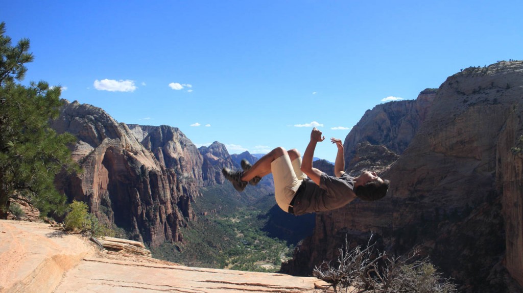 This is the last backflip of my holiday. Behind is the gorgeous Zion valley.