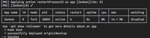 From now on, whenever you’ve pushed new changes to your repo, you can deploy your app with pm2 deploy ecosystem.config.js.