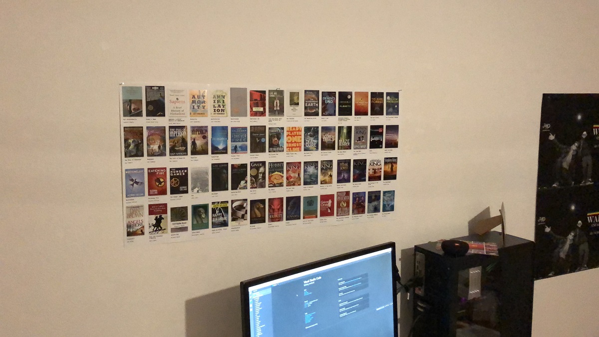 Two years ago I’ve started to read books on my mobile device. I have skipped the whole e-reader thing and went straight from hard covers to e-books. Many doubt that you can read a book comfortably on the smart phone, but I can tell with certainty that it works well. It is only a matter of changing your habits. However, there is one thing I miss. A hard cover in a bookshelf also represents an association with your memories of the book. Whenever I see a book cover I remember the story. This does not work with virtual book covers. Memories of books I’ve read on my e-book reader fade as they move beyond the display on my phone. To solve this issue I’ve come up with a simple solution. I want to create a bookshelf poster and pin it to my bedroom wall. With this idea in mind I’ve started creating a list of books I’ve read. Now I would like to present you the tool I’ve built to create beautiful post from this book list.